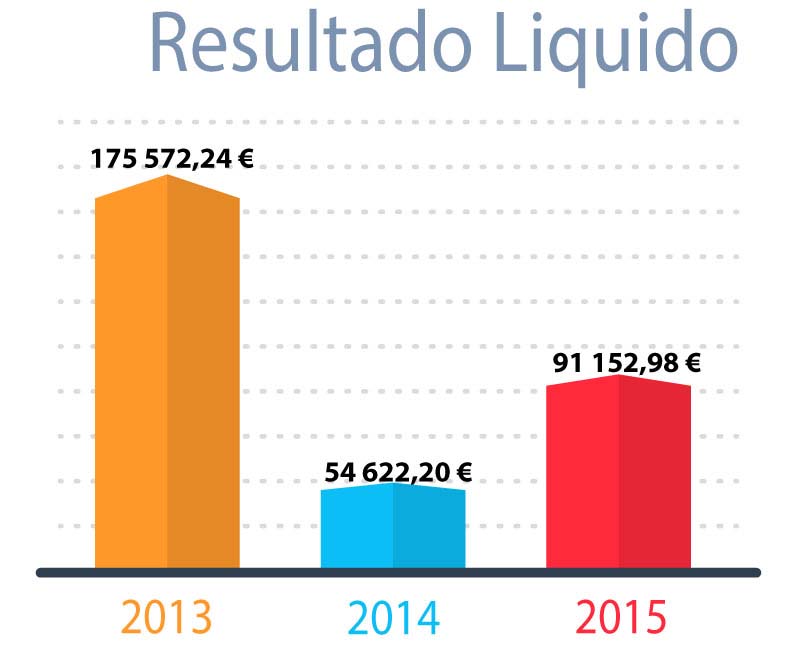 No período de 2015 os resultados espelham uma evolução positiva da atividade desenvolvida pela empresa. De facto, o volume de negócios atingiu um valor de 2 146 093,64 €, representando uma variação de 70,29% relativamente ao ano anterior.